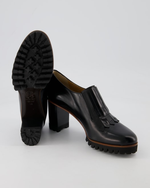 Entdecken Sie die eleganten Slipper 8419 von Trumans, gefertigt aus hochwertigem Glattleder in klassischem Schwarz. Diese stilvollen Schuhe für Damen vereinen exquisite Verarbeitung mit einem komfortablen Lederinnenfutter und einer flexiblen Leder- und Gummisohle, die jedem Schritt mühelos Stand hält. Der modische Blockabsatz von 5 bis 8 cm verleiht Ihnen zusätzlichen Schwung. Kombinieren Sie die Slipper elegant zu Kleidern oder lässigen Jeans für einen zeitlosen Look. Gönnen Sie sich diesen Schuhklassiker und erleben Sie höchsten Tragekomfort. Jetzt bei TRETTER zugreifen!