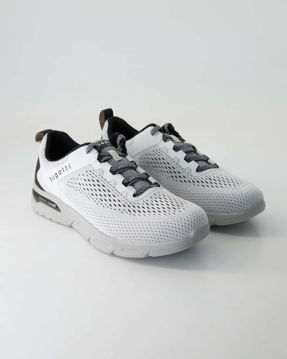 Der Herren-Sneaker Nubola von Bugatti in Weiß überzeugt mit sportlicher Leichtigkeit und modernem Design. Das atmungsaktive Obermaterial aus Textil und Synthetik sorgt für ein angenehmes Fußklima – ideal für aktive Tage. Die flexible Laufsohle unterstützt ein bequemes Abrollen, während die zweifarbigen Schnürsenkel dem Schuh eine dynamische Optik verleihen. Perfekt kombinierbar mit Jeans, Shorts oder Jogpants – für einen frischen, urbanen Look. Sichern Sie sich jetzt diesen vielseitigen Begleiter für Alltag und Freizeit.