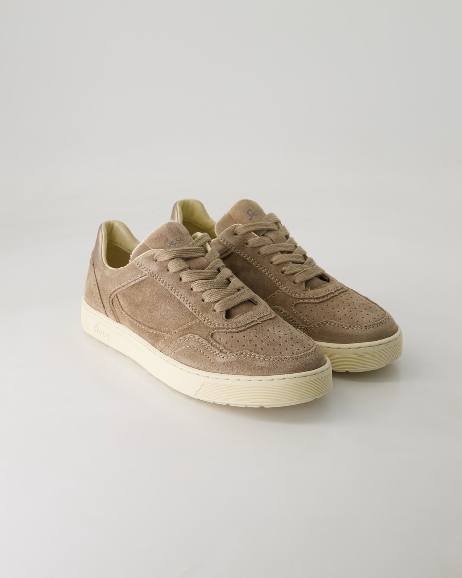 Entdecken Sie den Damen Sneaker Maites 004 von Sioux in elegantem Beige, gefertigt aus hochwertigem Veloursleder. Dieses Meisterwerk exzellenter Handwerkskunst vereint stilvolles Design mit höchstem Komfort. Die herausnehmbare Innensohle und das Innenmaterial aus Leder und Textil bieten optimalen Tragekomfort, während die Gummisohle für Langlebigkeit sorgt. Ob im Alltag oder zu smarten Casual-Looks – kombinieren Sie diesen vielseitigen Schuh mit Jeans oder einem schicken Kleid. Gönnen Sie sich diesen zeitlosen Begleiter, der Ihre Outfits perfekt abrundet und für bewundernde Blicke sorgt.