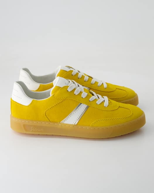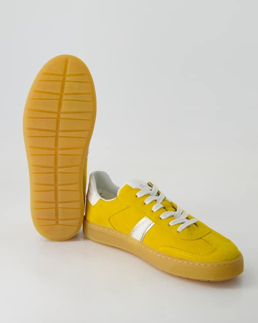 Ein Statement für stilbewusste Frauen – der Sioux Tedroso-Da-707 Sneaker in strahlendem Gelb aus edlem Veloursleder. Die flexible Laufsohle sorgt für ein angenehmes Tragegefühl, während das atmungsaktive Innenfutter aus Textil und Synthetik höchsten Komfort garantiert. Die kontrastierenden weißen Details und die klassische Schnürung verleihen dem Modell eine sportlich-elegante Note. Ob zur Jeans, zum Sommerkleid oder zur lässigen Chino – dieser Schuh setzt immer ein modisches Highlight. Jetzt entdecken und Farbe in den Alltag bringen!