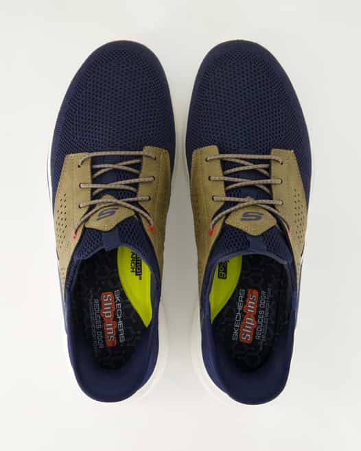 Entdecken Sie die Skechers Sneaker 210889 für Herren in einem stilvollen Blau. Hergestellt aus hochwertigem Textil und Synthetik, bieten diese veganen Sneakers nicht nur exzellenten Komfort dank der Air Cooled Einlegesohle und Memory Foam, sondern auch ein modernes Design. Die Gummisohle sorgt für optimale Griffigkeit. Kombinieren Sie diese vielseitigen Sneaker mit Jeans und einem lässigen Hemd für einen entspannten Look oder mit Chinos und einem Blazer für einen smarten Auftritt. Gönnen Sie sich den Komfort und Stil, den Sie verdienen – greifen Sie jetzt zu!