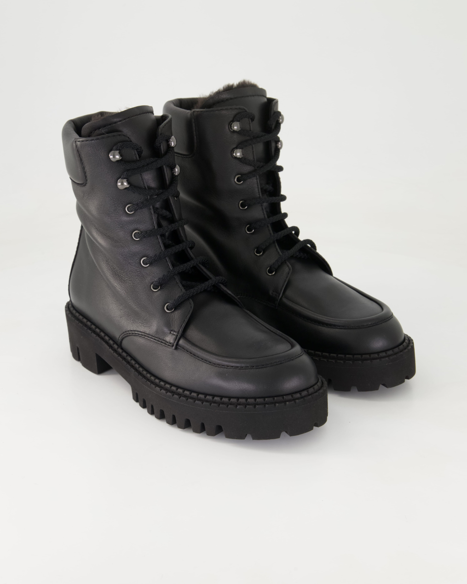Entdecken Sie den eleganten Schnürstiefel 4297 von Trumans in klassischem Schwarz. Hergestellt aus hochwertigem Glattleder, vereint dieser Schuh exzellente Handwerkskunst mit stilvollem Design. Das weiche Lammfellfutter sorgt für hervorragenden Komfort, während die robuste Gummisohle mit bis zu 3 cm Blockabsatz Stabilität und eine zeitgemäße Silhouette bietet. Ideal für Alltagslooks oder smarte Casual-Outfits, lässt sich dieser Stiefel vielseitig kombinieren – sei es zu Jeans oder Anzughosen. Gönnen Sie Ihren Füßen das Beste und setzen Sie auf den Trumans 4297 für anspruchsvolle Ansprüche.