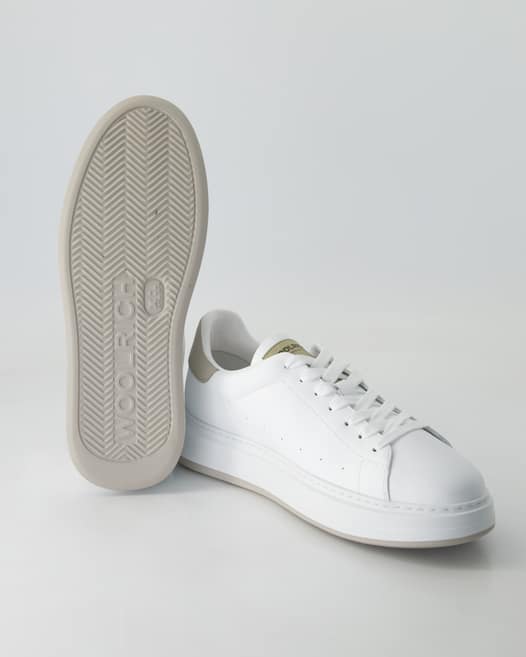 Entdecken Sie den Woolrich Arrow Court Sneaker für Herren in elegantem Weiß, gefertigt aus hochwertigem Leder und Kunstfaser. Dieser Sneaker vereint erstklassige Verarbeitung mit einem modernen Design, das garantiert zeitlos bleibt. Dank der extra-leichten Gummisohle und der herausnehmbaren Innensohle genießen Sie optimalen Komfort beim Tragen. Das Innenmaterial aus Leder und Textil sorgt für ein angenehmes Fußklima. Kombinieren Sie diesen vielseitigen Schuh sowohl zu lässigen Jeans als auch zu smarten Chinos und bringen Sie Ihren persönlichen Stil zur Geltung. Erleben Sie das Gefühl von Qualität und Stil – Ihre Füße werden es Ihnen danken.
